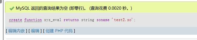 接下来注册命令执行函数,如果已存在可以使用DROP FUNCTION IF EXISTS sys_eval;丢掉上次注册的