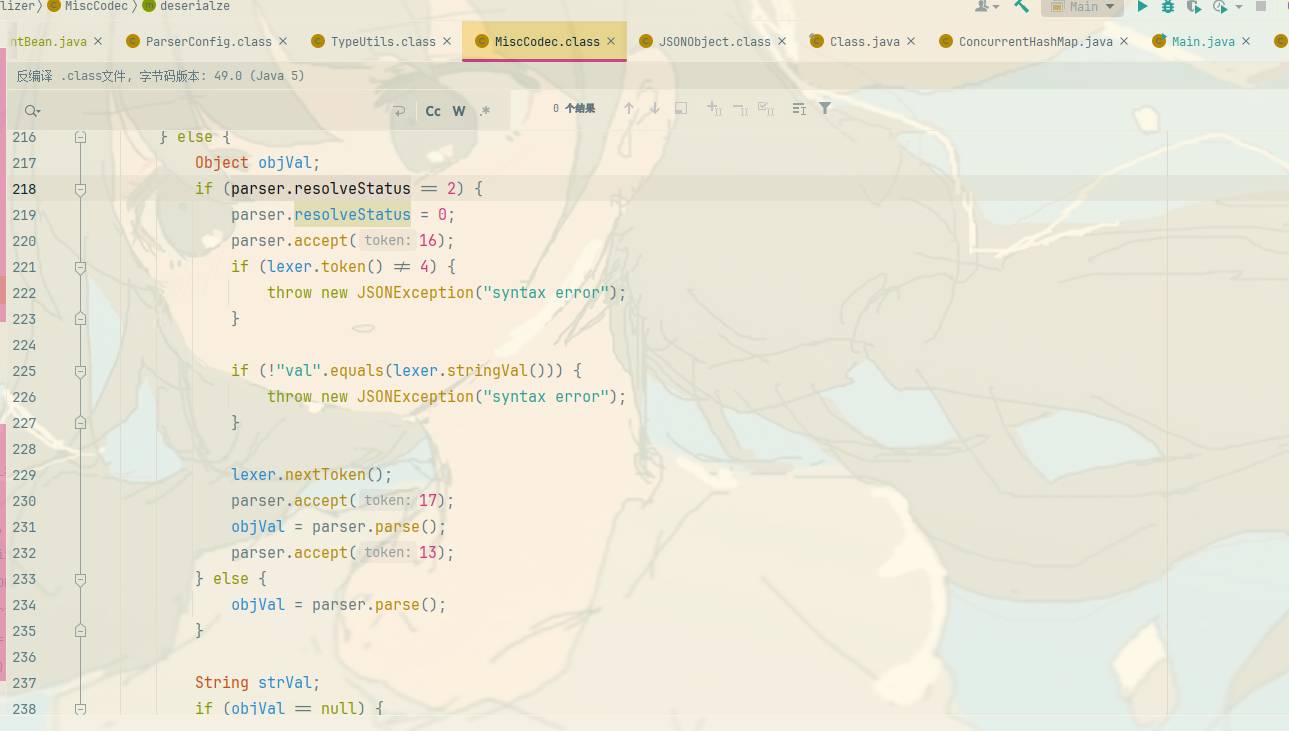 这里解释一下为什么json被解析之后会被调用到MiscCodec,当type属性指定为java.lang.Class,parseObject就会调用ParserConfig.getDeserializer()获取MiscCodec作为反序列化器