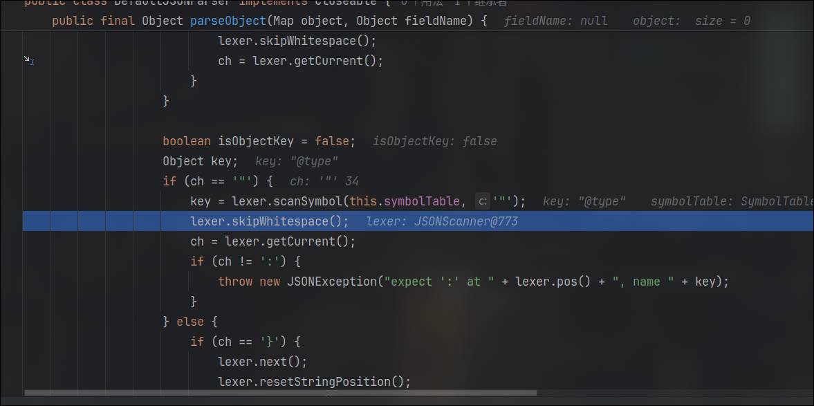 当parser.resolveStatus时,会检测json数据中有无val这个值,若存在则将其赋给objval,最终也就是要加载的类名
