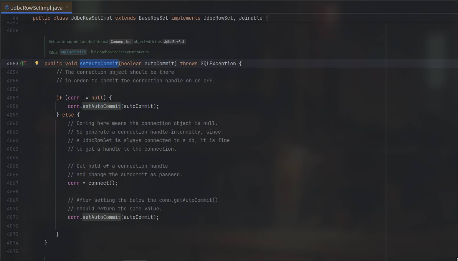 我们来看到JdbcRowSetImpl类的setAutoCommit方法,其命名符合setter规则