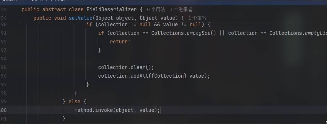 在FIledDeserializer的setValue方法这里反射调用了setter方法