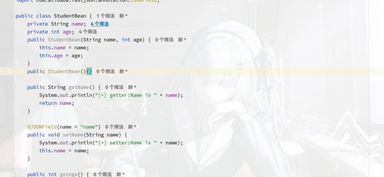 还有就是bean类中需要写无参构造方法,fastjson才能通过setter