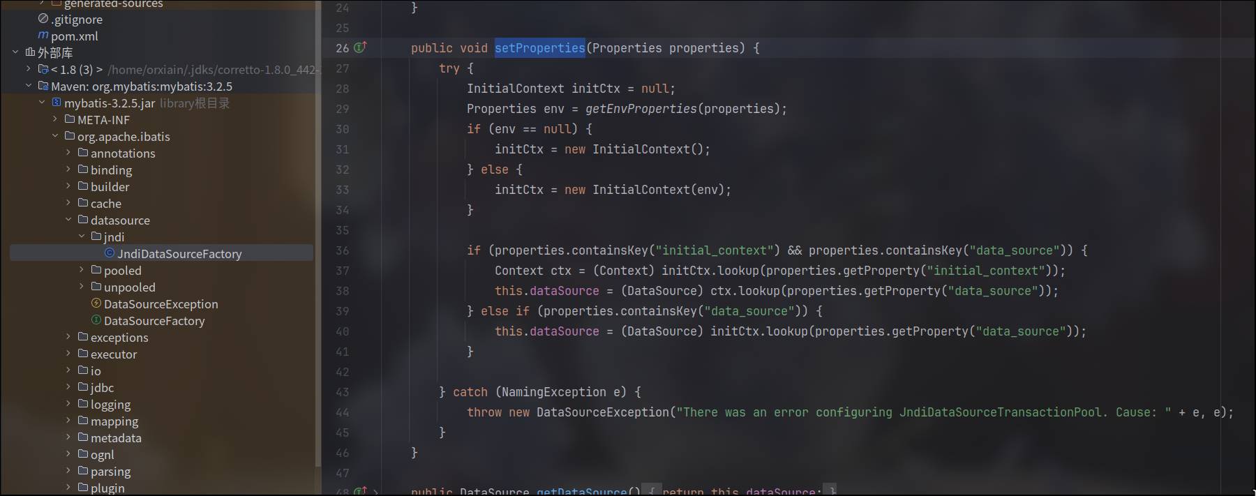 一眼看到lookup了properties.getProperty(“data_source”),我们看看这个能修改不,跟进getProperty方法