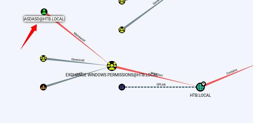 添加该用户到Exchange Windows Permissions群组,该群组可以访问修改HTB.LOCAL上的DACL