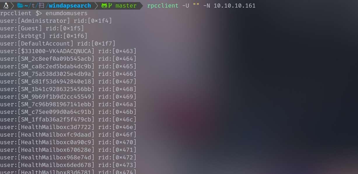 rpcclient -U "" -N 10.10.10.161