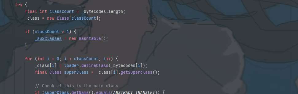 接下来的AbstractTranslet translet = (AbstractTranslet) _class[_transletIndex].newInstance();将_class进行了实例化加载,也是在这里执行了构造方法