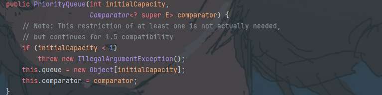 PriorityQueue queue = new PriorityQueue(2);//使用指定的初始容量创建一个 PriorityQueue,并根据其自然顺序对元素进行排序。