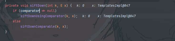 前面的不说了,从PriorityQueue.readObject开始,接下来调用了Heapify,siftDown