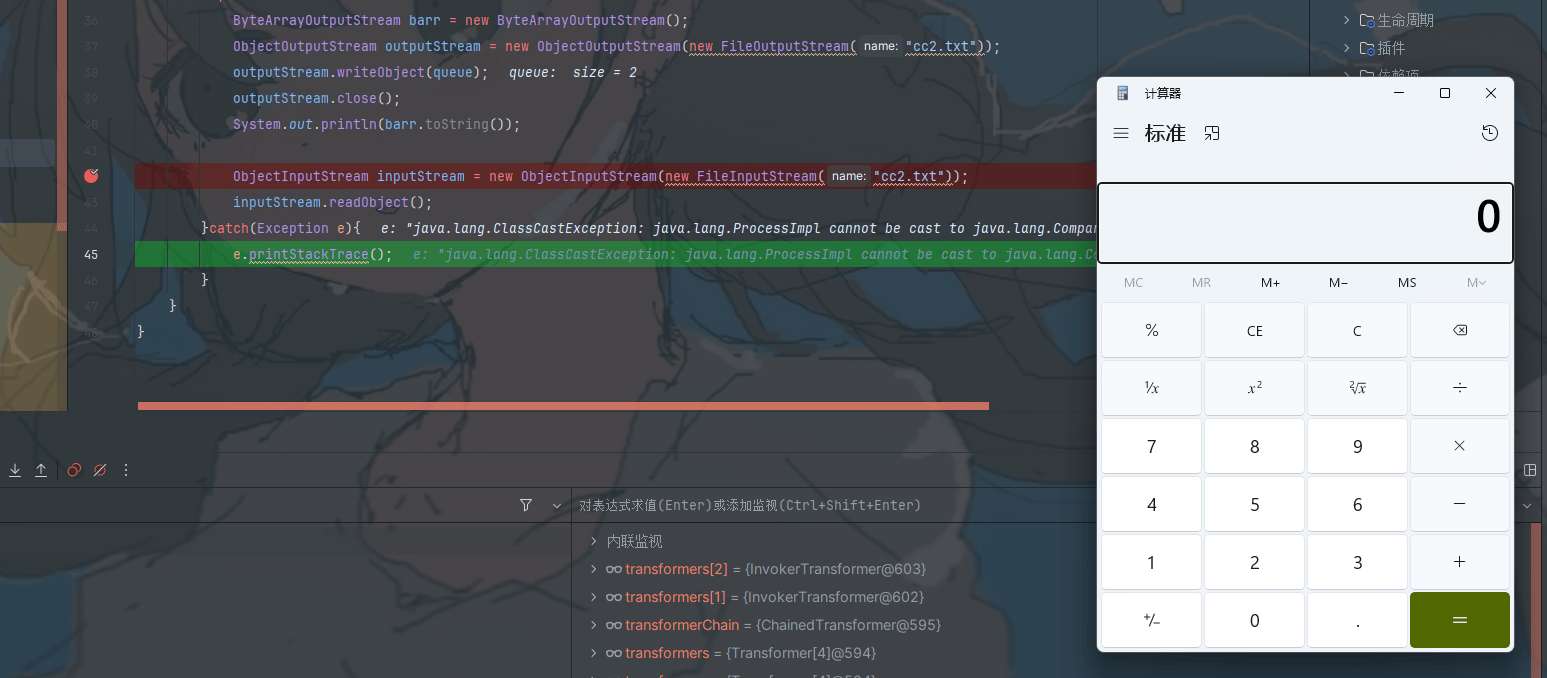 ChainedTransformer可以创建一系列的Transfomer链式调用,最终达成Runtime.getRuntime().exec("calc.exe")的效果