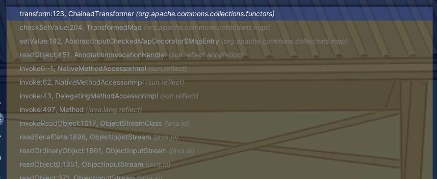 有这样一个class:TransformedMap,其中会调用transform方法,且继承了java.io.Serializable,TransformedMap可以指定transform去修饰Map实例