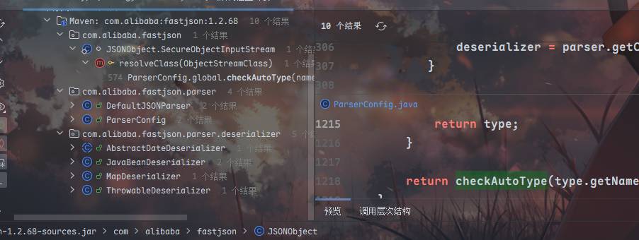 voidfyoo佬的文章对于链子的发现过程记录很清晰,对于1.2.68版本的fastjson的利用利用条件比较苛刻,所以放眼第三方包,在maven前100找到了common-io中有符合继承了AutoCloseable的objectstream类,因为这个包是用来干IO操作的,继承了AutoCloseable的类比较多