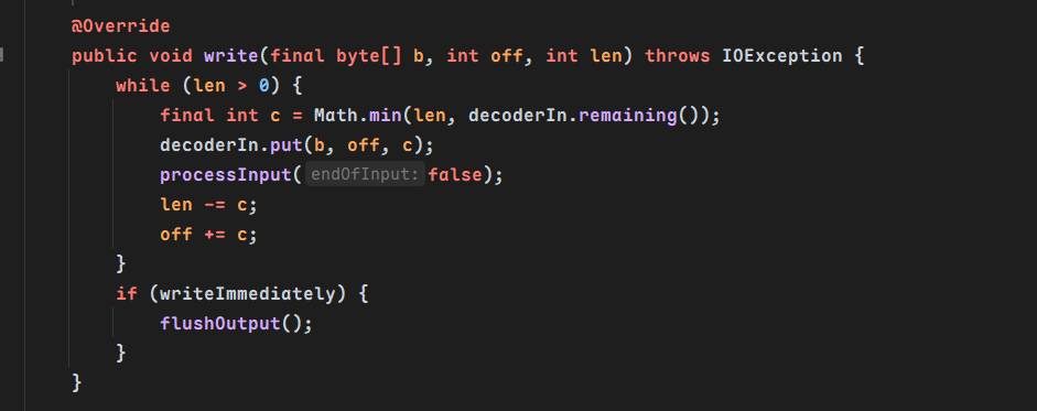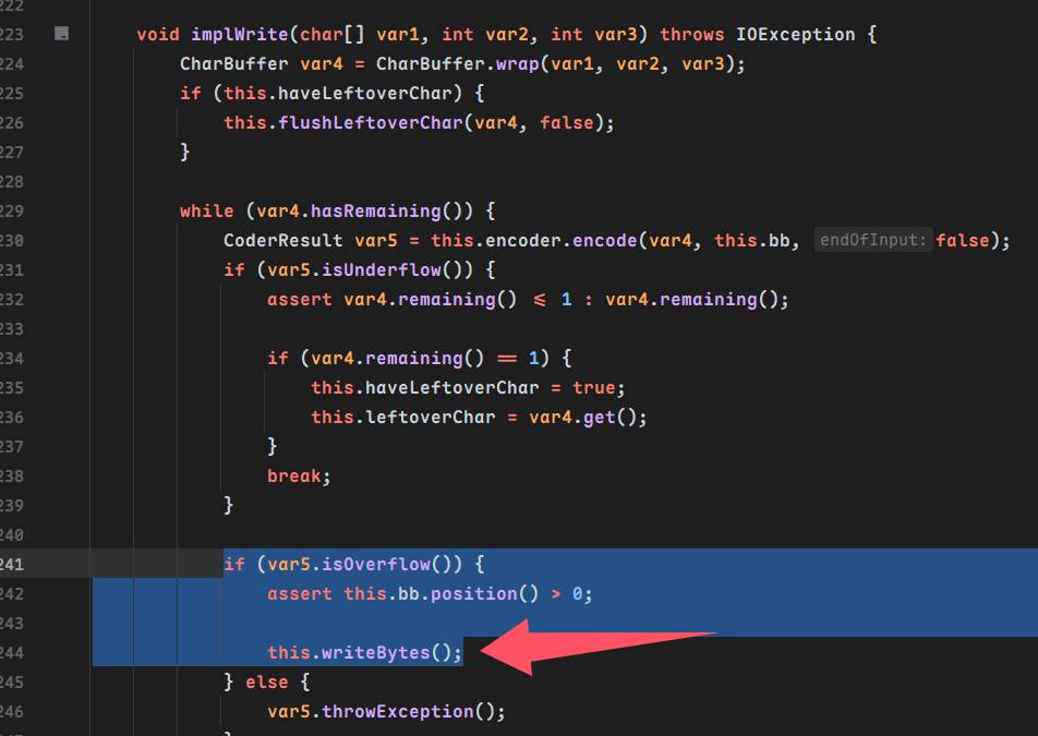 关注到WriterOutputStream类的write方法