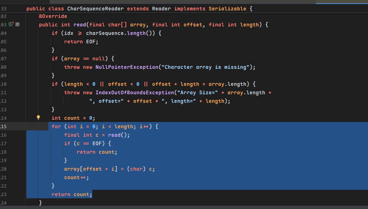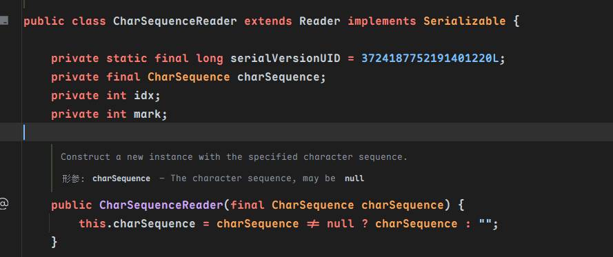 该传入哪个reader类呢?注意到CharSequenceReader的read方法