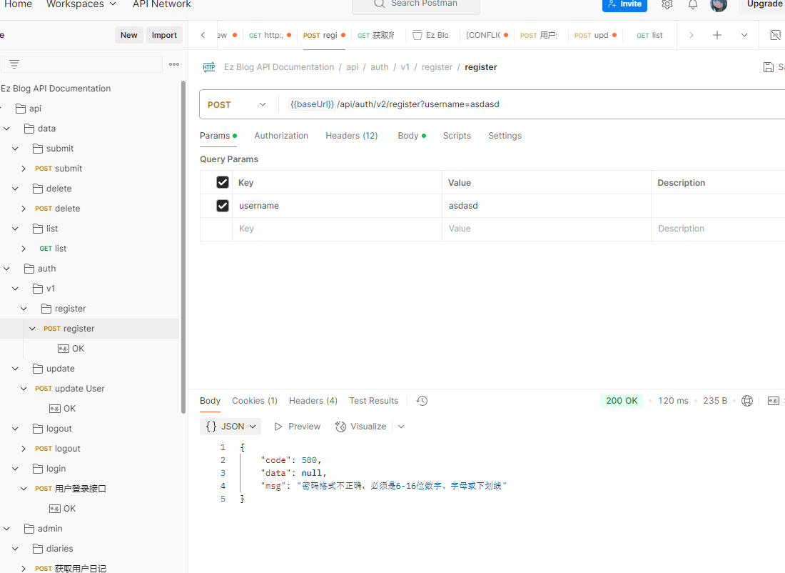 将api文档导入postman,发现注册接口被废弃,盲猜改成了v2,发现成功注册